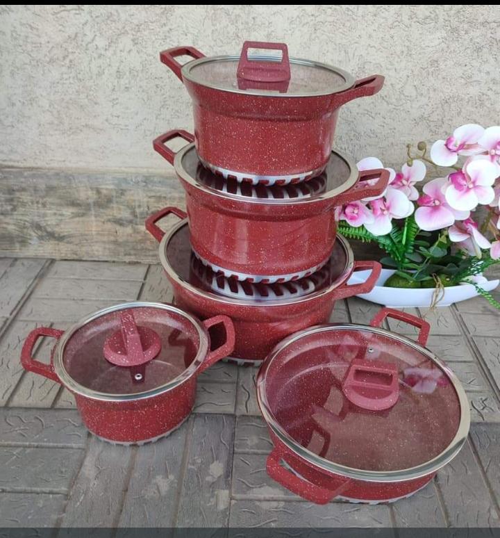 Redwine Bosch granite cookware set comes in a set of 5 with lids